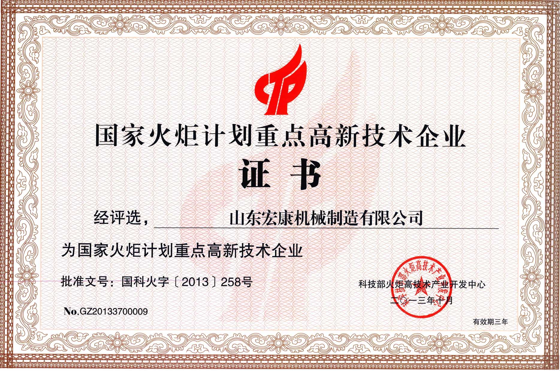 根據國家科技部火炬中心《關于發布2013年國家火炬計劃重點高新技術企業評選結果的通知》(國科火字〔2013〕258號),集團公司被評選為國家火炬計劃重點高新技術企業。