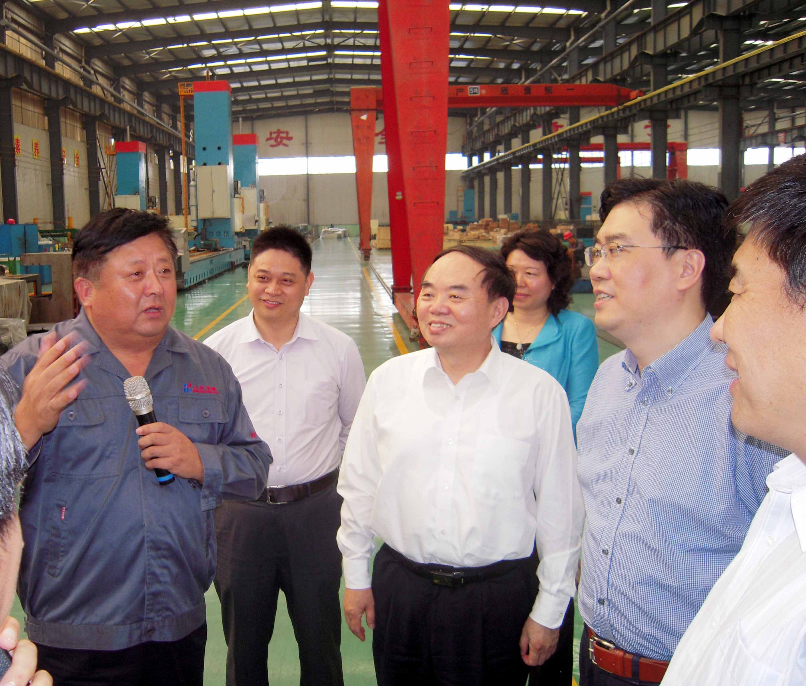 圖為中國工程院院長周濟(jì)(右二)在宏康現(xiàn)場。