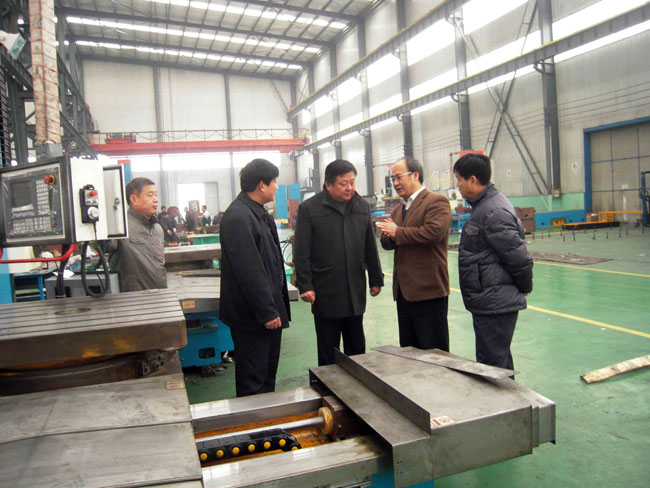 12月5日,西安交通大學機械工程學院副院長、博士生導師趙升噸教授蒞臨我集團考察指導工作。圖為董事長總經理康鳳明、常務副總經理潘憲平等領導陪同趙教授參觀鏜銑床項目生產現場。