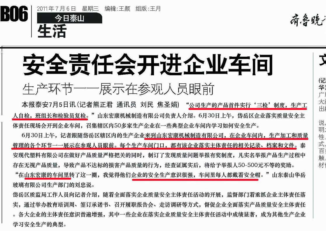 公司安全生產又上一個新臺階(2011年7月6日 齊魯晚報)